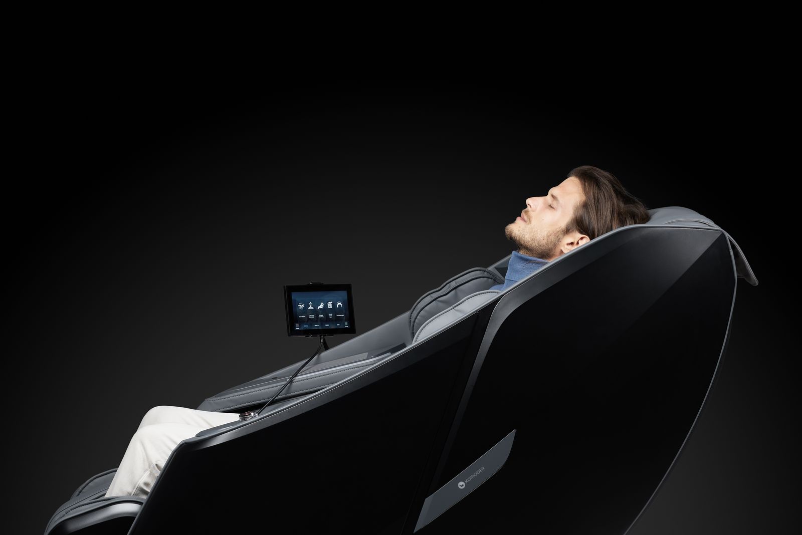 Utilizando el sistema de escaneo preliminar (Body Sensing), el sillón reconoce a su usuario, determinando sus dimensiones para ajustar correctamente la posición y el recorrido de los robots de masaje. Este proceso dura menos de un minuto y, una vez finalizado, se puede elegir inmediatamente el masaje o la técnica más adecuada.